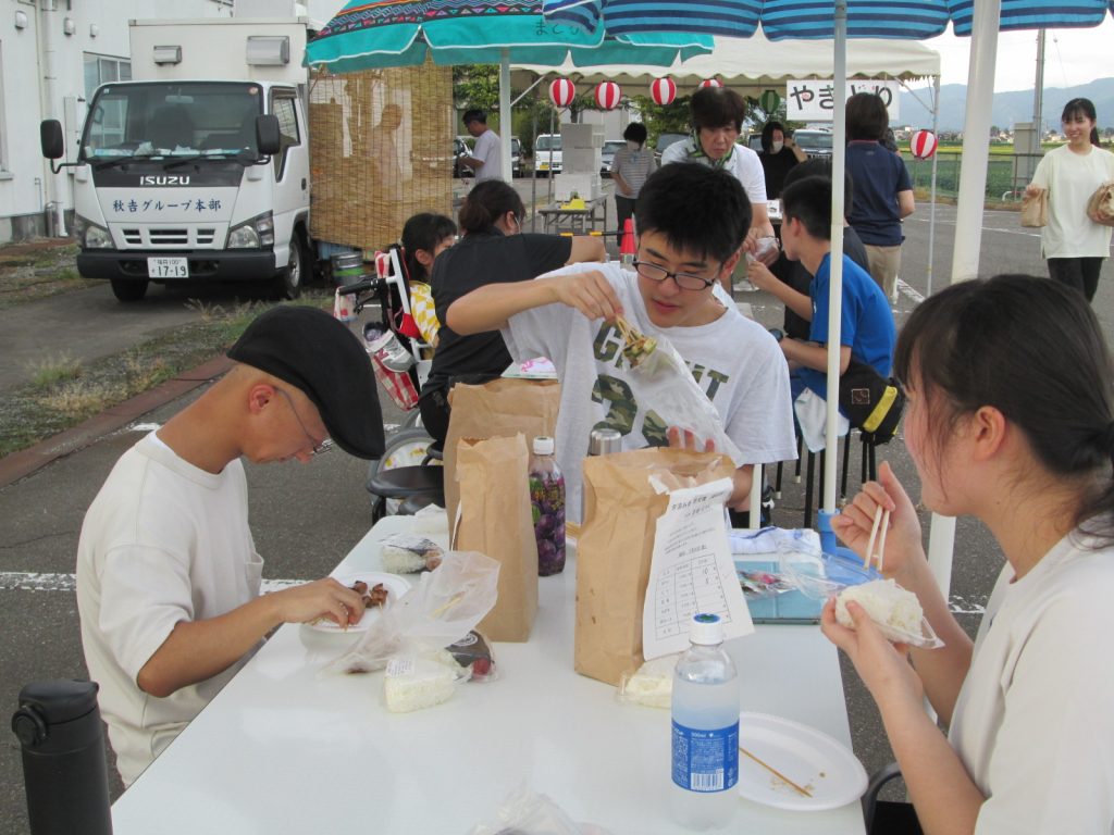 9月8日(月)、夕涼み会を行いました。今回は、福井県民のソウルフードとして親しまれている「やきとりの名門 秋吉」様の出張サービスに来て頂きました。目の前で炭火で焼き上げられた本格的な味に、舎生たちは「おいしい!」と笑顔で味わっていました。