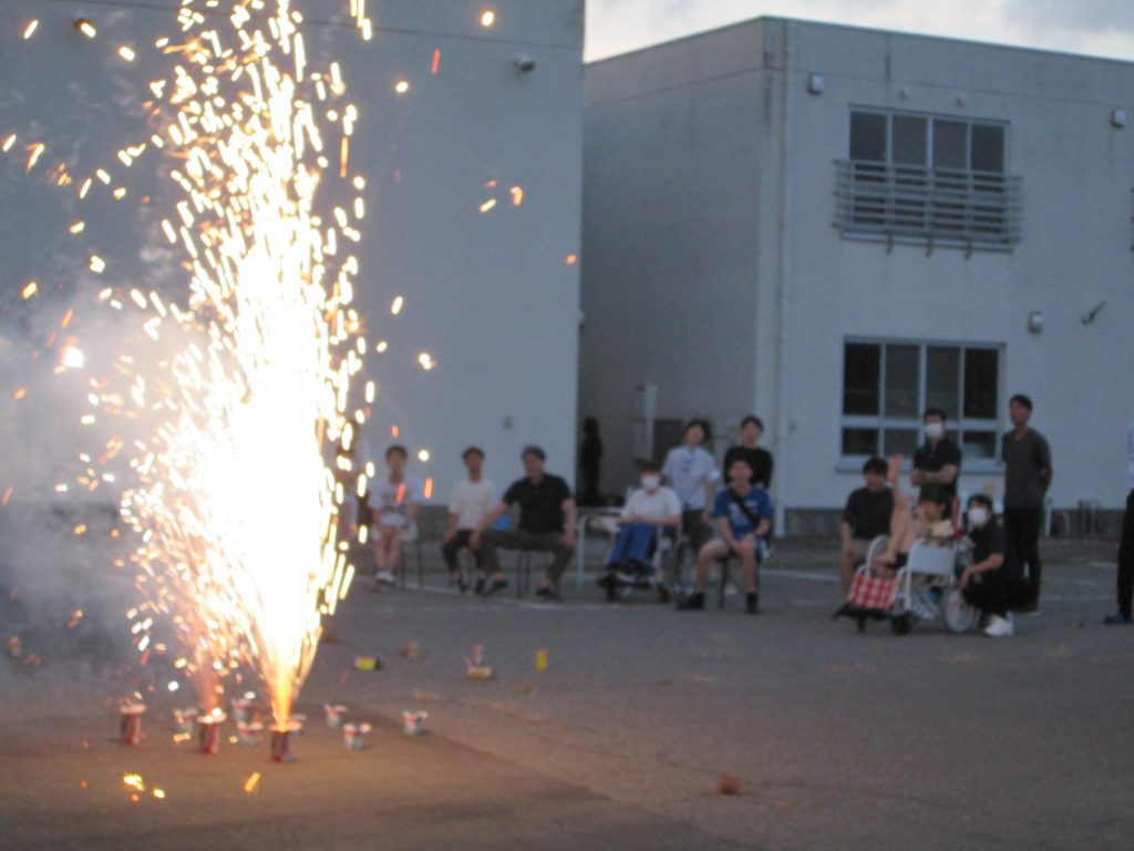 そして、夕涼み会のフィナーレを飾ったのは噴き出し花火。地面から勢いよく吹き上がる光と音を楽しみ、歓声とともに夏の夜を彩りました。