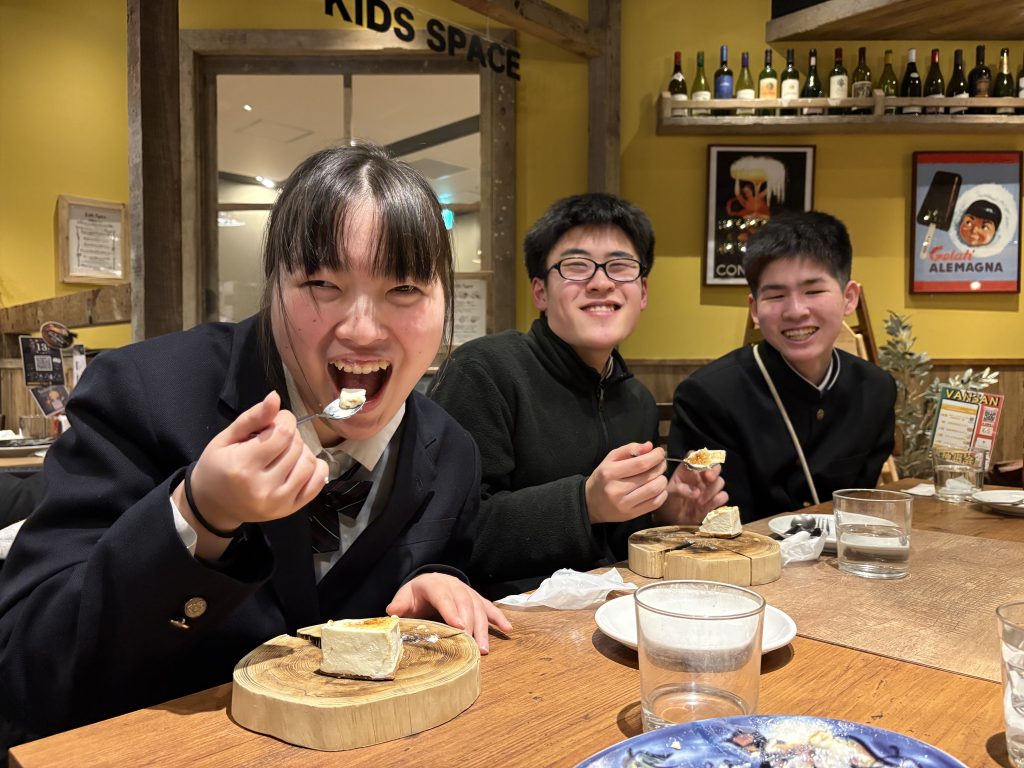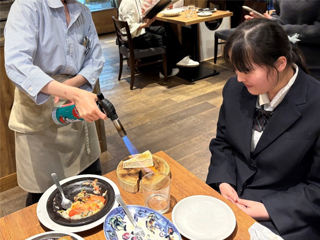 レストランでは、スマートフォンから簡単にメニューを注文できたり、目の前でチーズケーキを炙るライブパフォーマンスを体験したりと、また新たな経験ができました。おしゃれで温かい雰囲気の中で、美味しい料理を囲みながら、笑顔と笑い声あふれる楽しいひとときとなりました。